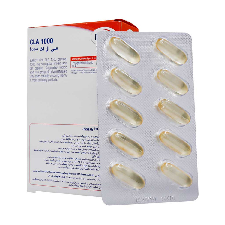 - CLA یوروویتال تامینکننده 1000 میلیگرم لینولئیک اسیدکونژوگه در هر کپسول