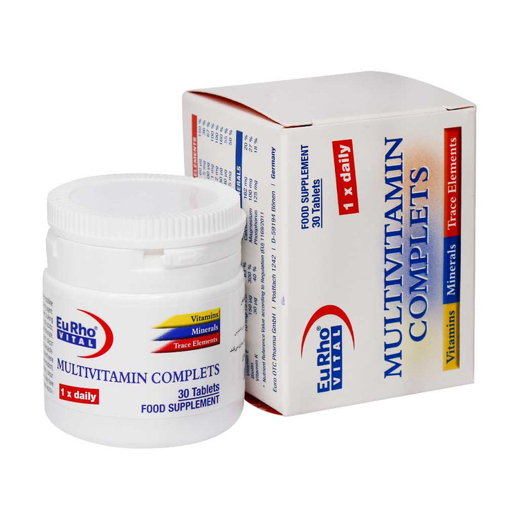 قرص مولتی ویتامین کامپلیت یوروویتال مجموعهای تمام و کمال از ویتامینها و املاح معدنی ضروری برای بدن است که با جبران کمبودهای تغذیهای، به حفظ سلامت عمومی بدن کمک مینماید. مولتی ویتامین کامپلیت یوروویتال حاوی 13 نوع ویتامین و 11 ماده معدنی است که متناسب با نیاز روزانه تمام افراد بزرگسال اعم از نوجوانان، جوانان، بزرگسالان طراحی شده است.