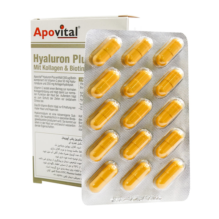 - روش مصرف کپسول هیالورون پلاس آپوویتال: روزانه 1 عدد کپسول