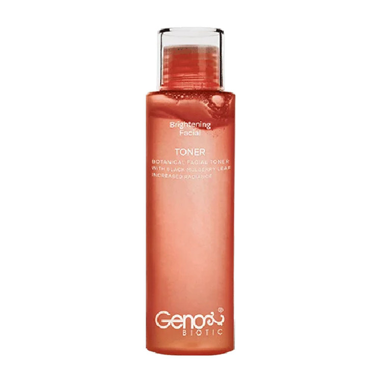 تونر روشن کننده صورت ژنوبایوتیک از ترکیبات خاص و تخصصی تشکیل شده که به عنوان روشن کننده و سفید کننده پوست نیز شناخته میشود. استفاده از تونر ژنوبایوتیک منجر به پاک شدن منافذ پوست میشود و تمامی ذرات باقی مانده مواد آرایشی را پاک میکند. عصاره برگ شاه توت سیاه به کار رفته در تونر روشن کننده ژنو بایوتیک باعث یکنواخت شدن رنگ پوست میشود. همچنین با تامین رطوبت کافی طراوت پوست صورت را حفظ میکند. از دیگر ترکیبات موثر در این محصول میتوان به شیرین بیان اشاره نمود. این ترکیب دارای خاصیت ضد التهابی و ضد میکروبی قوی است که باعث از بین رفتن قرمزی پوست میشود. علاوه بر آن دارای خواص آنتی اکسیدانی بسیار خوبی است.
