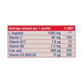 ساشه ال آرژنین پلاس، حاوی آرژنین به همراه ویتامینهای B6، B9، B12، C و D3