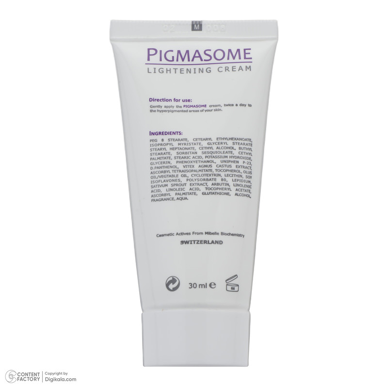 رنگ پوست حاصل تجمع رنگدانه های ملانین در سلول های پوست است که میزان تولید و نحوه تجمع این رنگدانه ها علاوه بر شرایط ژنتیکی، خصوصیات قومی و نژادی و شرایط سنی، به عوامل محیطی (از قبیل داروهای ضد بارداری)، جراحات پوستی و جوشگاه زخم ها (اسکار) و غیره بستگی دارد. لک های پوستی ناشی از تجمع موضعی رنگدانه های ملانین می باشد. طی یکسری فرایندهای بیو شیمیایی اسید آمینه تیروزین تحت تاثیر آنزیم تیروزینار به رنگدانه ملانین تبدیل می گردد.کرم ضد لک صورت پیگمازوم یک ضد لک غیر هیدروکینونی حاوی آنتی اکسیدان ، ویتامین و مواد ضد پیری و دیگر مواد موثره طبیعی است که می تواند موجب رفع تیرگی ها و لک های پوست ناشی از عوامل مختلف گردد. مصرف مداوم این محصول نه تنها سبب روشن تر شدن و جوان تر شدن پوست میگردد، بلکه می تواند موجب برطرف شدن تیرگی های روی اسکار جوش یا زخم ، لک های ناشی از نور آفتاب ، بارداری و یا پیری گردد. این کرم حاوی مواد روشن کننده و ضد پیری موثر مانند آلفا آربوتین طبیعی، مخلوطی از پپتید های متعدد، گلوتاتیون و ویتامین سی به همراه اکتیو سولفورفان می باشد که به فرم انکپسوله لیپوزومال بوده و جزو برترین و ایمن ترین مواد موثره ضد لک و روشن کننده در جهان هستند.