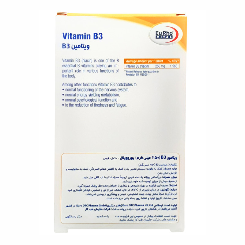 قرص ویتامین ب 3 یوروویتال بسته 60 عددی