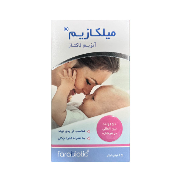 ین محصول، یک فرآورده طبیعی می باشد. • عدم تحمل لاکتوز در نوزادان تازه متولد شده می تواند منجر به ناراحتی در هضم، نفخ و دل درد شود که این می تواند یک عامل مهم در کولیک نوزادان باشد. • ماده موثره در قطره میلکازیم®، آنزیم لاکتاز است که باعث تجزیه لاکتوز شیر به گلوکز و گالاکتوز می شود و در نتیجه هضم آن را راحت تر می کند.