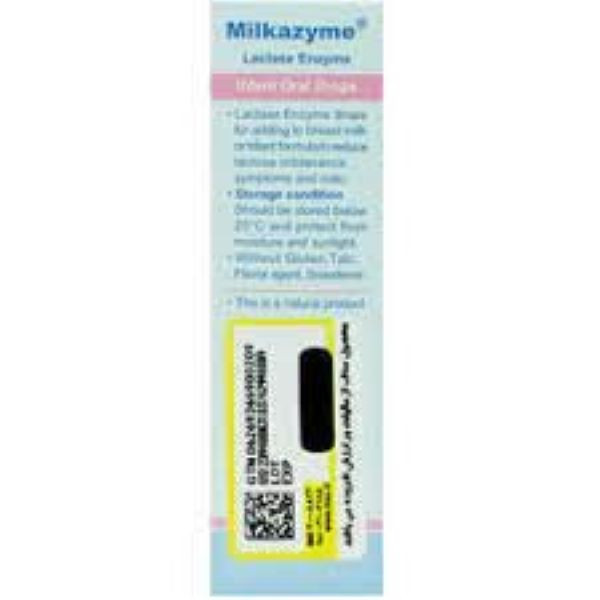 ین محصول، یک فرآورده طبیعی می باشد. • عدم تحمل لاکتوز در نوزادان تازه متولد شده می تواند منجر به ناراحتی در هضم، نفخ و دل درد شود که این می تواند یک عامل مهم در کولیک نوزادان باشد. • ماده موثره در قطره میلکازیم®، آنزیم لاکتاز است که باعث تجزیه لاکتوز شیر به گلوکز و گالاکتوز می شود و در نتیجه هضم آن را راحت تر می کند.