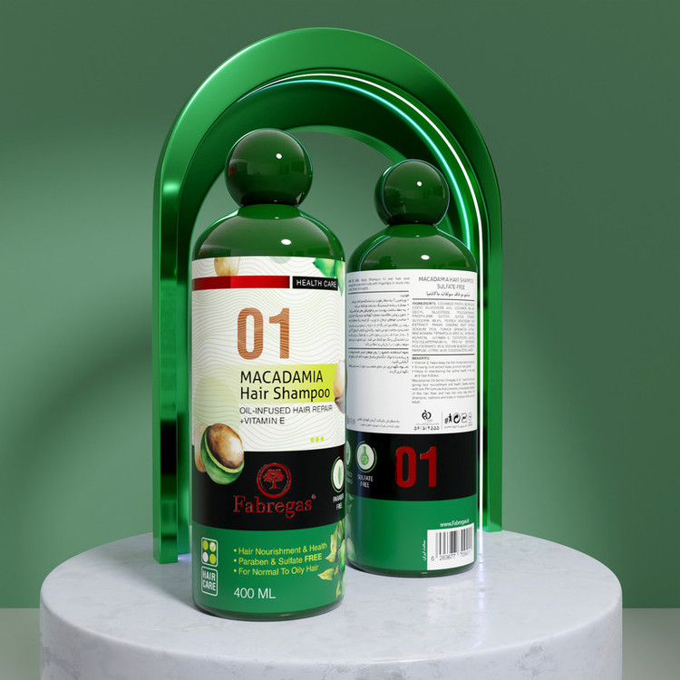 شامپو تقویت کننده و ترمیم کننده مو فابریگاس مدل روغن ماکادمیا حجم 400 میلی لیتر