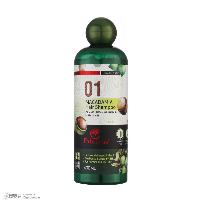 شامپو تقویت کننده و ترمیم کننده مو فابریگاس مدل روغن ماکادمیا حجم 400 میلی لیتر
