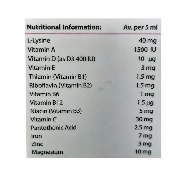 اطفال زیر یک سال: نصف قاشق مرباخوری، روزانه 2 بار کودکان 1 تا 4 سال: 1 قاشق مرباخوری پر، روزانه 2 بار کودکان 5 تا 12 سال: 1 قاشق مرباخوری پر، روزانه 3 بار بزرگسالان: 2 الی 3 قاشق مرباخوری، روزانه 2 بار